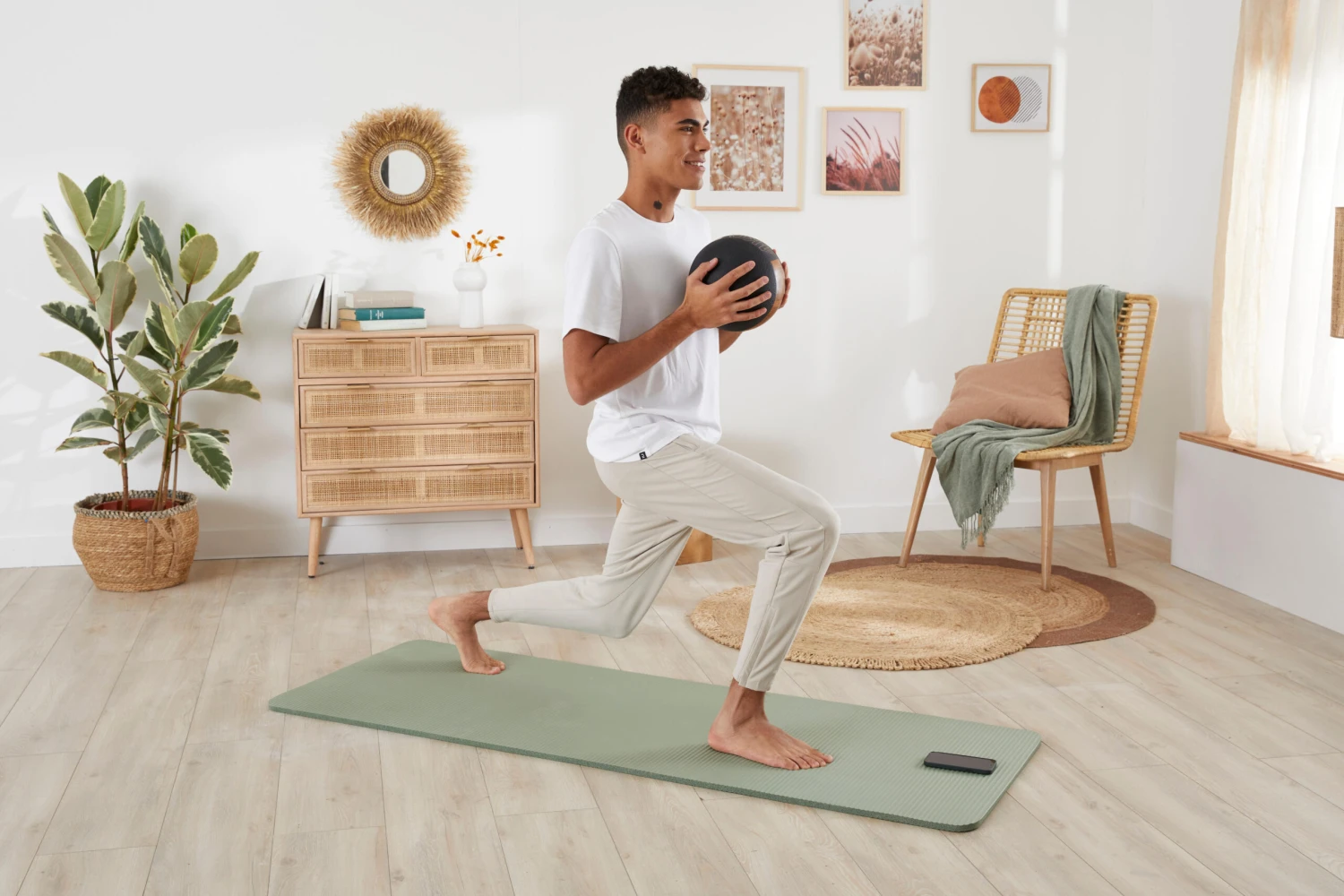 We advise adapting the weight of your medicine ball to the muscle group you are working on. The lower-body muscles are more powerful than the upper-body muscles. You can therefore use heavier weights for your squats and lunges.