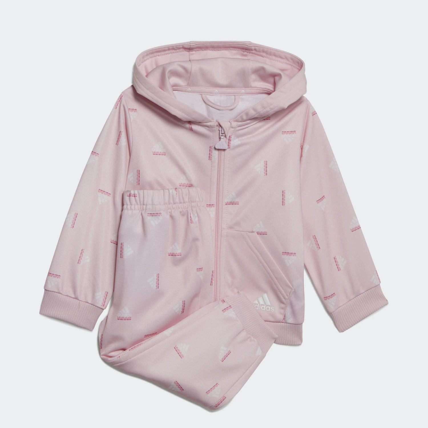This infants’ adidas track suit has mini-me styling appeal. Light and breathable, it lets them move freely. The easy-on pants are cut for a slim fit through the legs so they sit perfectly atop tiny sneakers. Made with 100% recycled materials, this product represents just one of adidas’ solutions to help end plastic waste.
