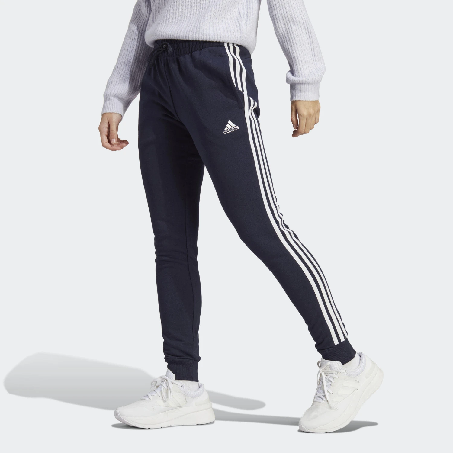 Throw these adidas pants on to warm up before your workout, and then feel free to wear them for the rest of the day. The slim fit adds a sporty look, while the drawcord on the elastic waist adds security. They are made from all cotton French terry to keep you comfy no matter what your day has in store.