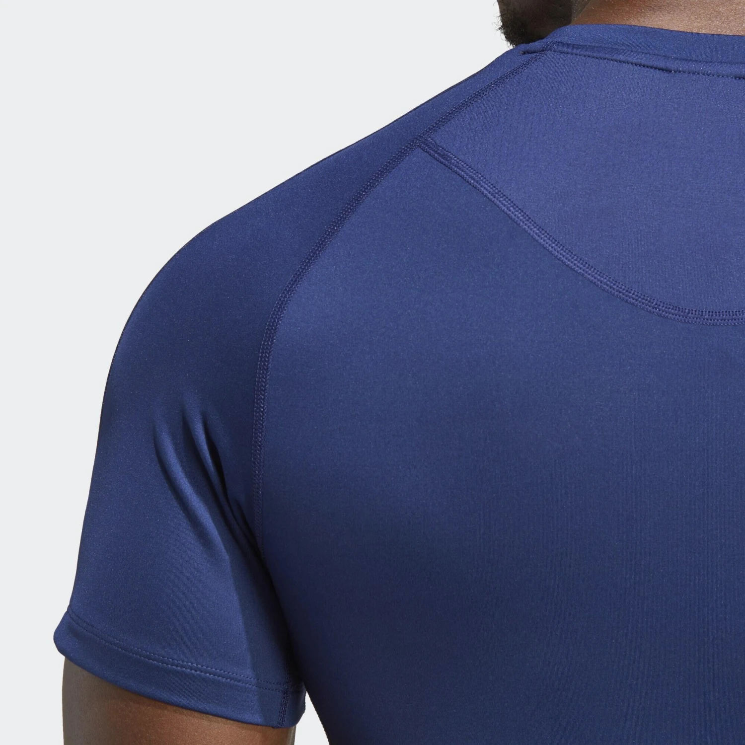 Cardio to arm day, this adidas base layer t-shirt will help you power through. Break your personal records in total comfort, thanks to mesh on the upper back where you need it most and moisture-absorbing AEROREADY. Everything about this training tee is made so you can move freely, like a dynamic shape and a super stretchy fabric.