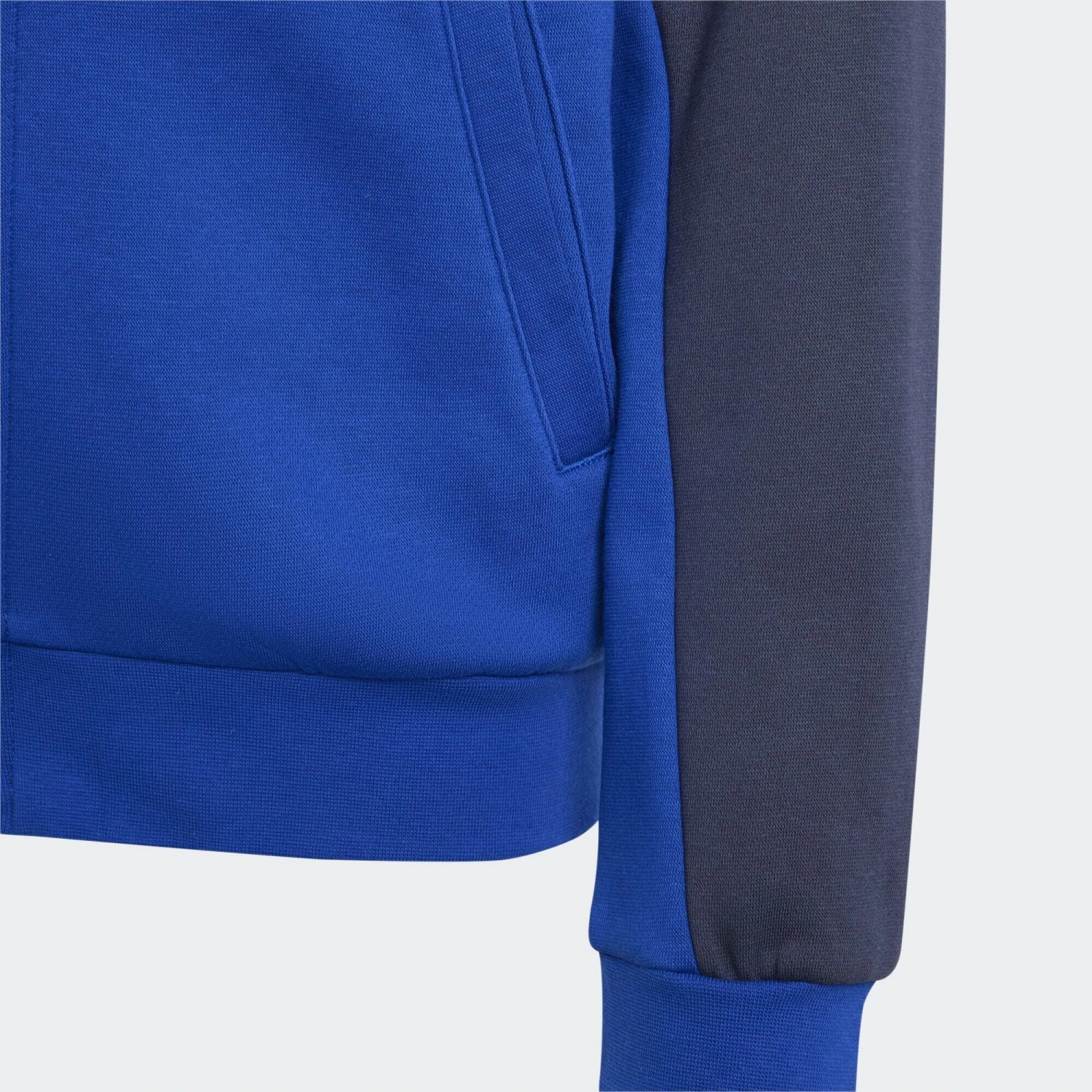 Warm-up to cool-down to hanging out, this juniors’ track suit gets you through your busy day in comfort. Nothing unnecessary. Just the essentials. Like soft fleece that feels warm and cosy and adidas Badge of Sport logos. You’re good to go.Made in part with recycled content generated from production waste, e.g. cutting scraps, and post-consumer household waste to avoid the larger environmental impact of producing virgin content.