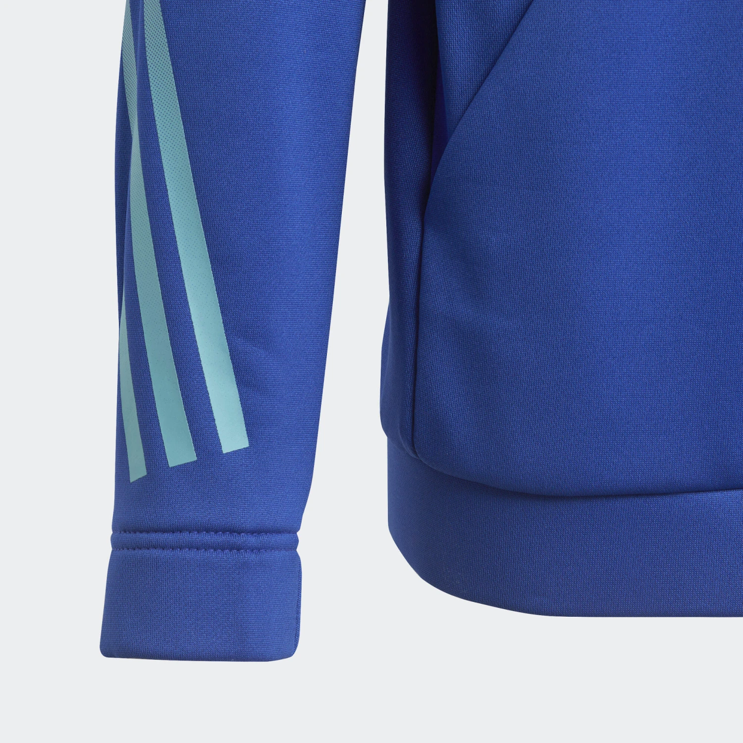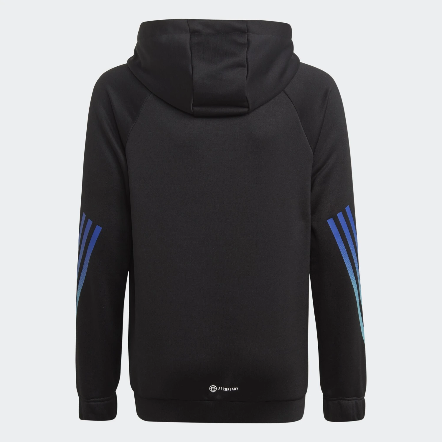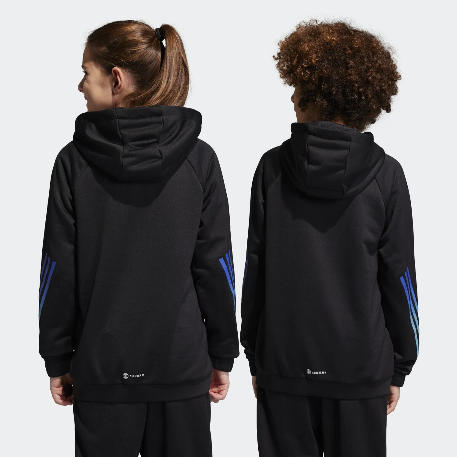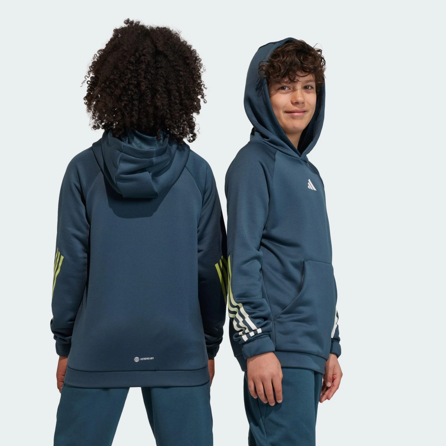 Warming up on the track or winding down after practise, you’ll feel comfortable and confident in this juniors’ adidas training hoodie. AEROREADY deals with moisture, so you stay dry through weekend pickup games. 3-Stripes wrap around the sleeves, flashing your athlete cred for all to see.Made with 100% recycled materials, this product represents just one of adidas’ solutions to help end plastic waste.