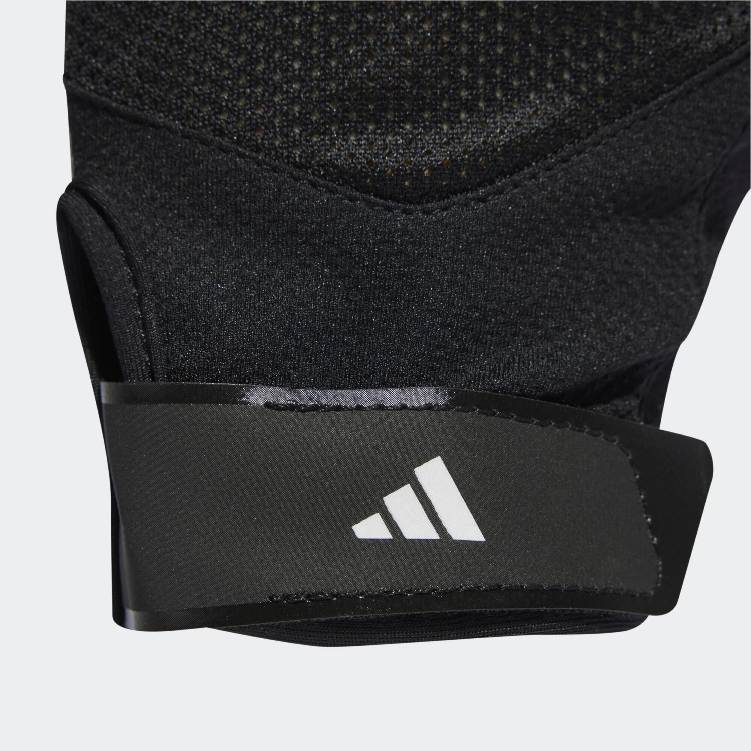 Protect your hands during your toughest workouts. These adidas training gloves are made with faux leather for a sleek look. The hook-and-loop wrist straps adjust for a stay-put fit, while anti-slip palms give you a firm grip on the barbell or battle ropes.