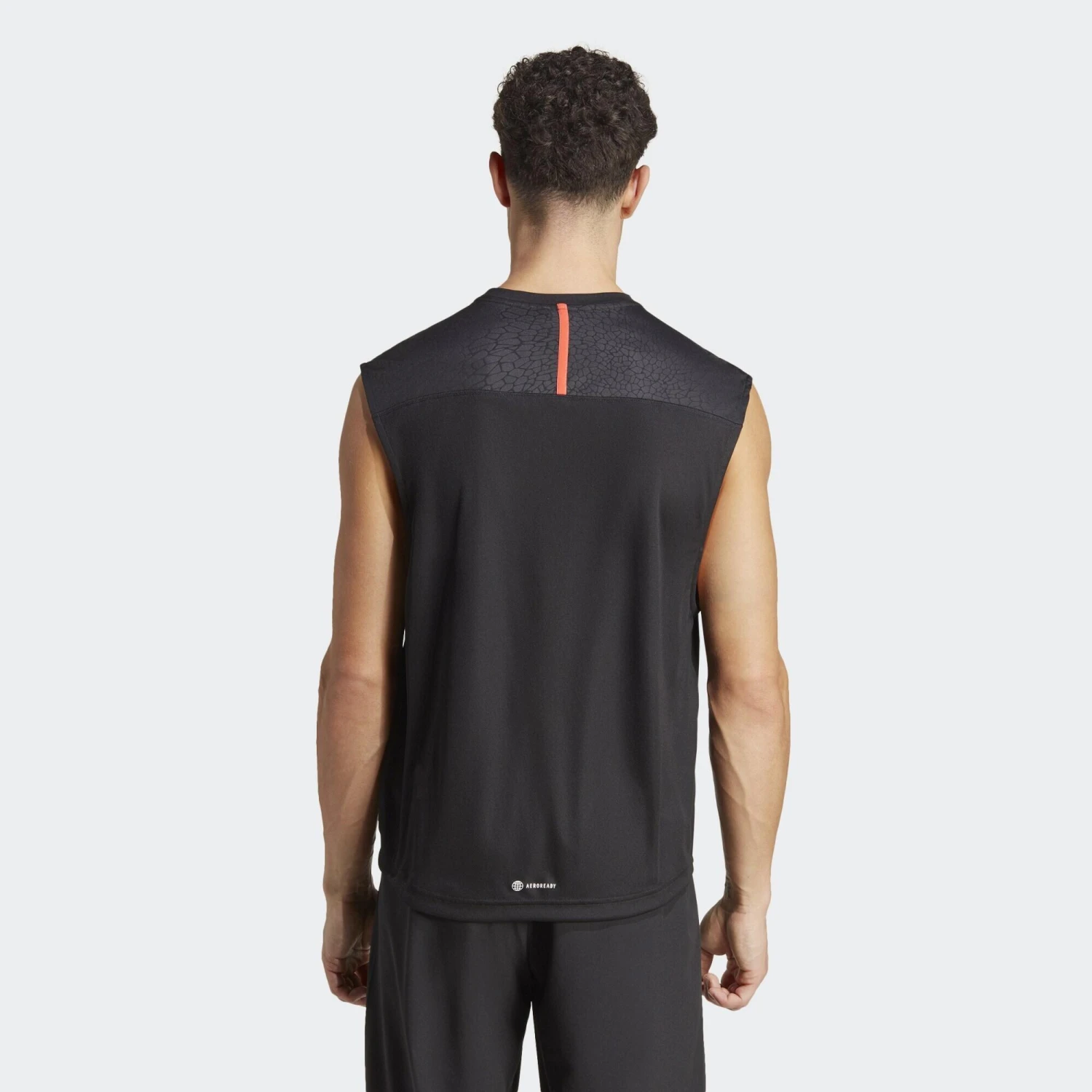 Make the most of push day in this sleeveless training tee. Moisture-absorbing adidas AEROREADY keeps you dry through heavy bench press sets. Dropped armholes give you extra freedom for overhead movement, and the longer hem in back keeps you covered.Made with 100% recycled materials, this product represents just one of adidas’ solutions to help end plastic waste.
