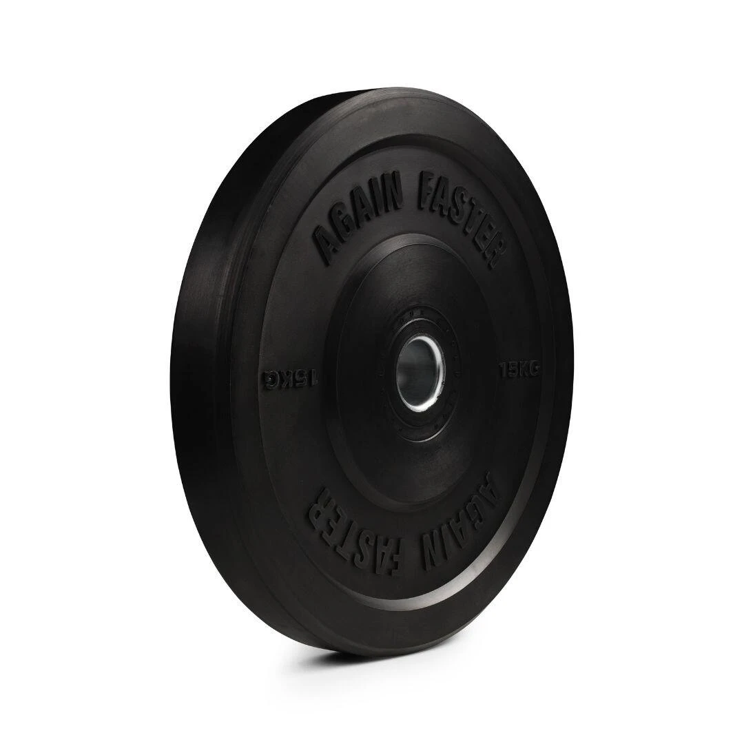 Again Faster Virgin Rubber Bumper Plates are high-quality weight plates designed to absorb the shock impact of drops. This keeps your drops safe, thanks to the low, more predictable bounce, and also protects your barbell. The high-density virgin rubber used is what ensures this low, controllable bounce. The sleek, all-black finish also looks great in any gym setting.