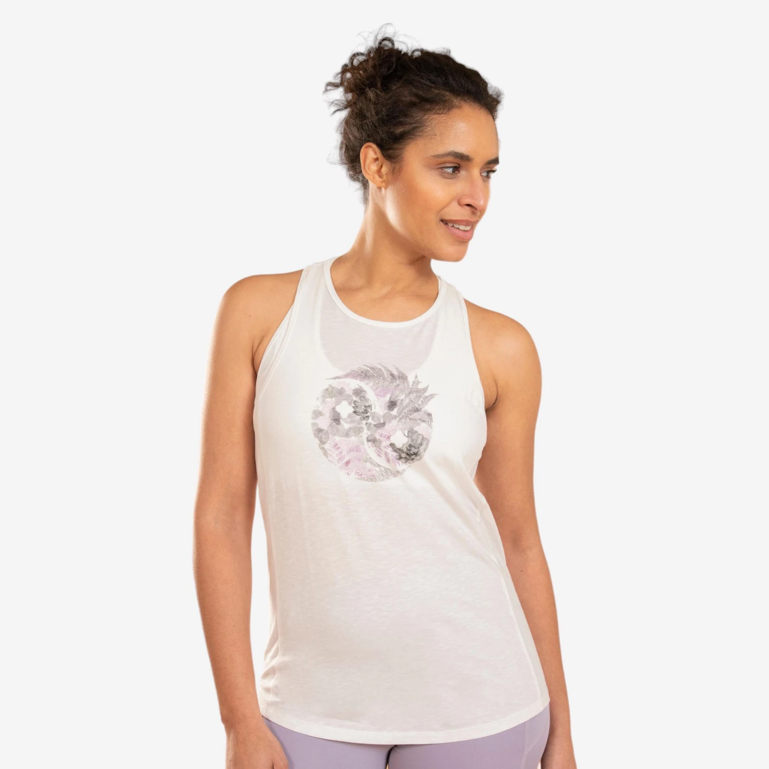 Soft and draping, this tank top made of 48% organic cotton is a good basic for all of your yoga practices.Because yoga isn’t limited to leggings and a sports bra, you can choose this printed cotton tank top for all your workouts. Its loose shape provides freshness and flow.
