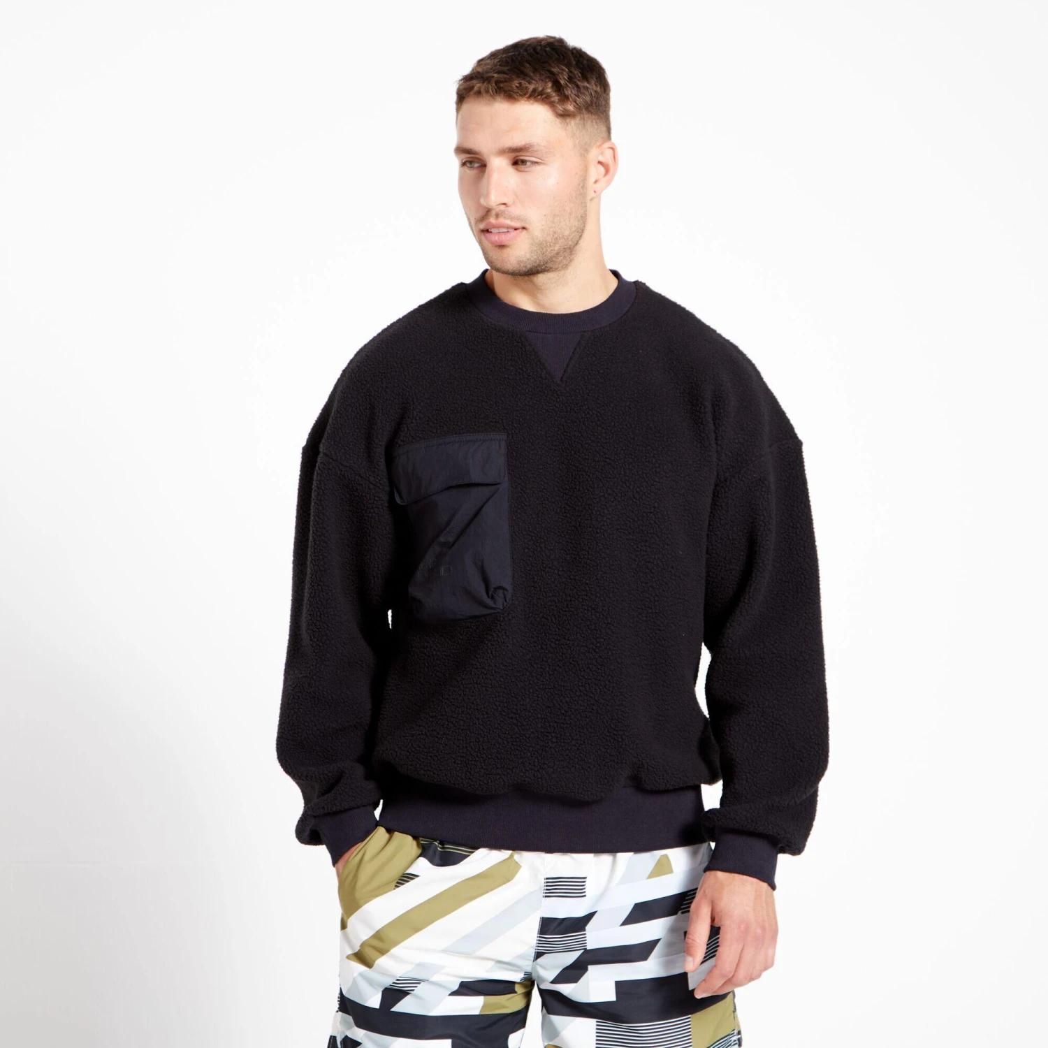 The Wind Down Fleece Sweat designed in collaboration with Henry Holland. Made of soft borg fleece with knitted rib cuffs and collar. Layer over tees and vests for a cosy laid back fit.