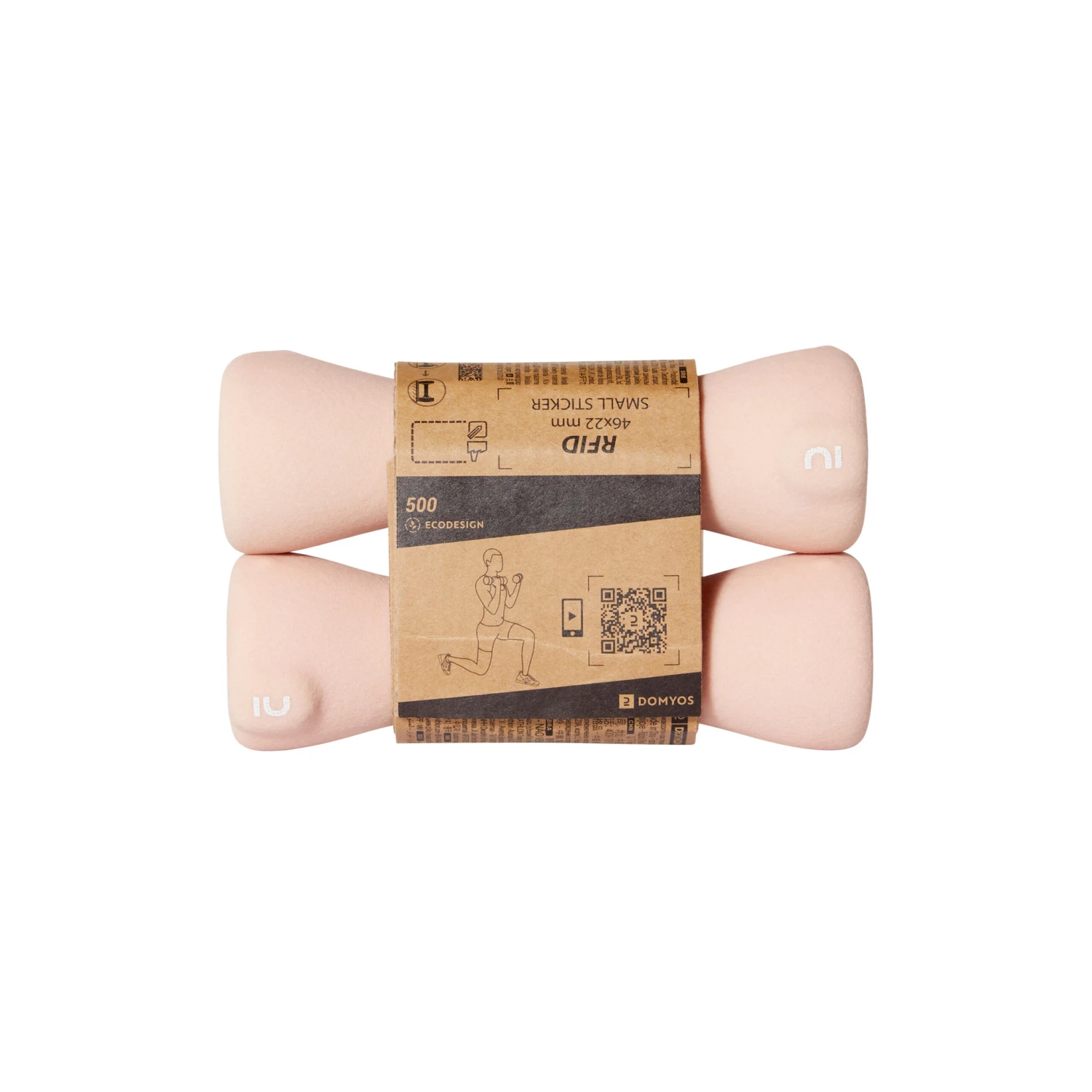 This dumbbell set, eco-designed with recycled cast iron, won’t mark your floors! The colourful design will blend into any decor.These dumbbells are comfortable to use and will blend into any decor. Scan the QR code to get 5 workout videos!