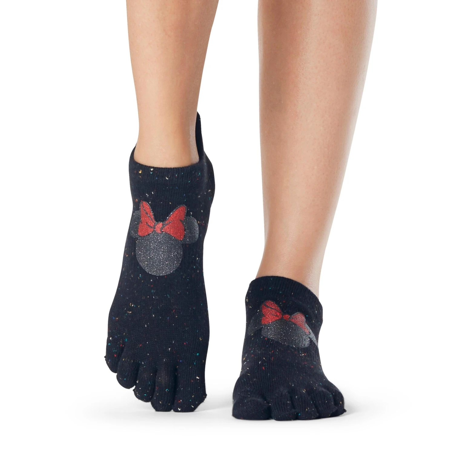 - Arch Band, Five Toe Design, Grip Dots, Low Profile, Mesh Panel.