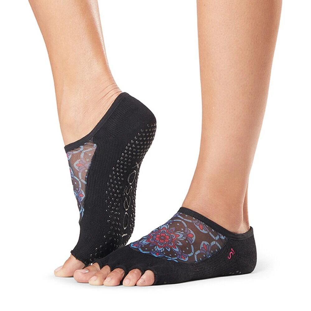 - Arch Band, Five Toe Design, Grip Dots, Half Toe, Low Profile, Mesh Panel.