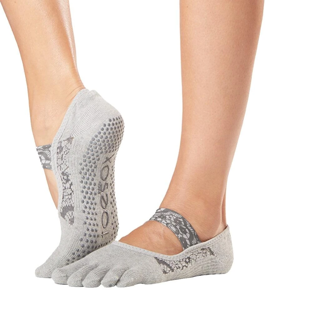 - Arch Band, Fitted Heel, Five Toe Design, Grip Dots, Low Profile, Secure Fit.