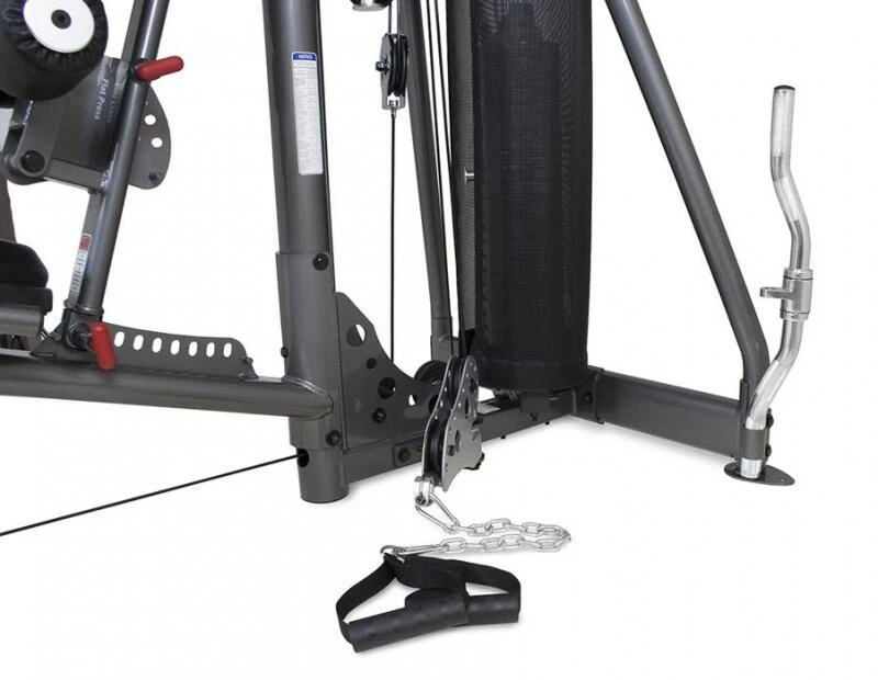 Press arms feature 4 standard and 4 reverse positions with a Free Motion Cable System for improved mobility and co-ordination