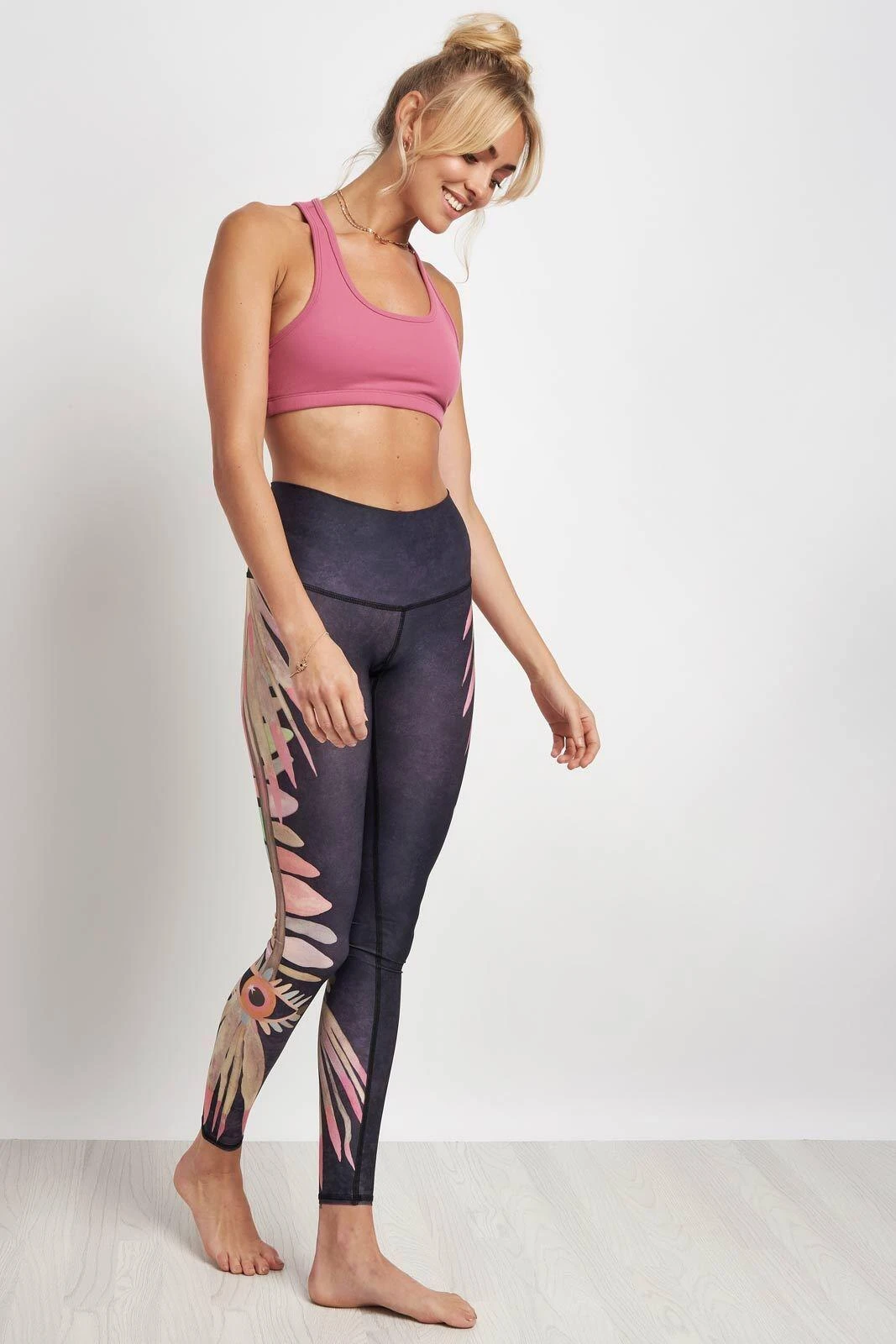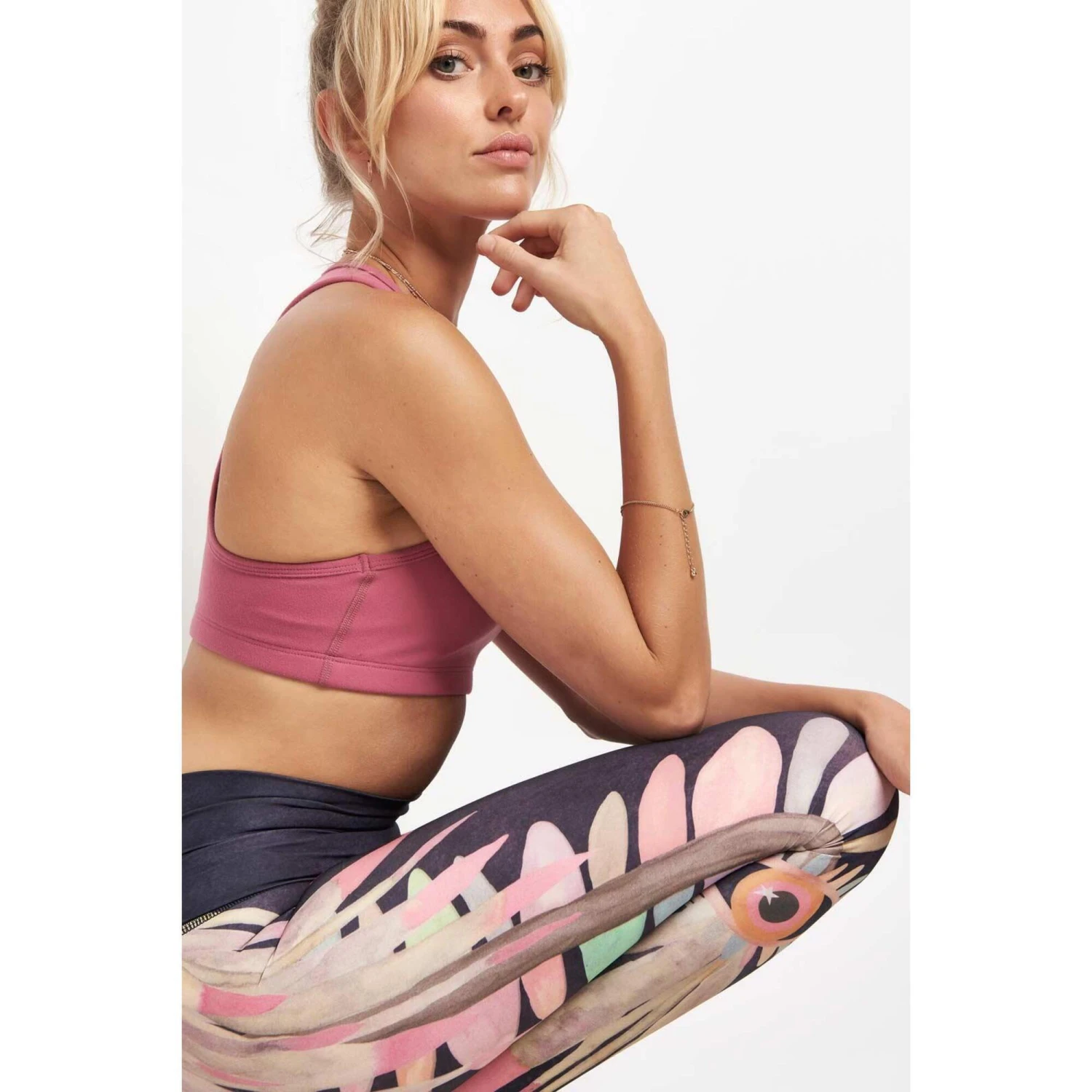 Created in the USA, these eco-conscious leggings are made from a mix of recycled p.e.t fabric and spandex for incredible flexibility. Moisture-wicking properties will help regulate your temperature and reduce chafing, while a wide waistband and mid-rise cut allow for a complete range of movement. Let the quirky print appeal to your wild side. Tiger pose never felt so natural, trust us.