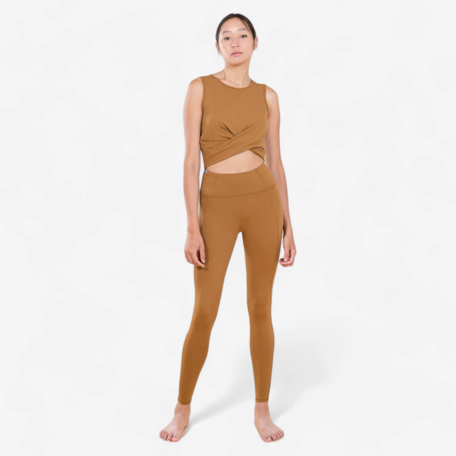 So we propose yoga way of life sets : a crop top which is stylish with my dark blazer at the end of the day, a legging which I can wear 10 hours long.