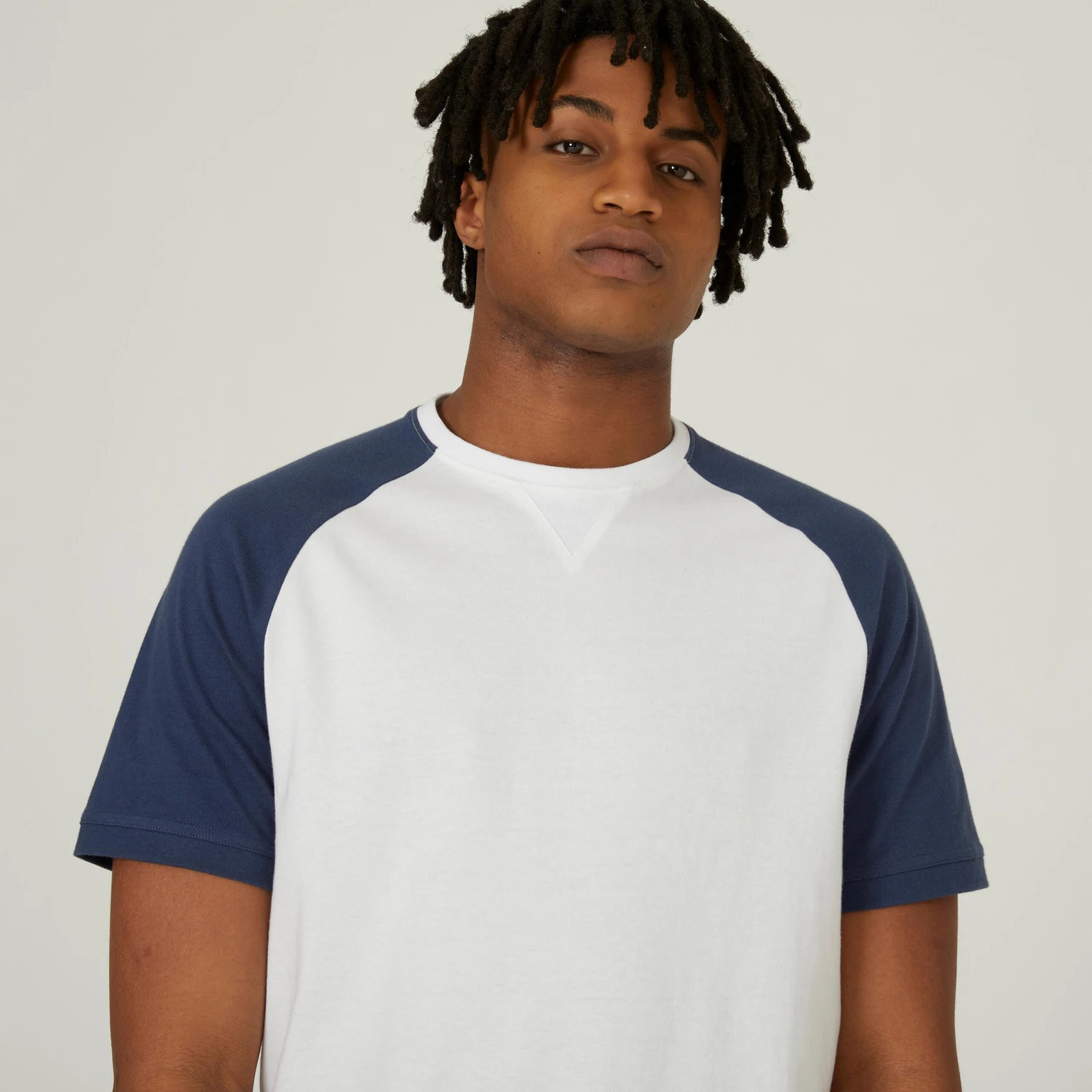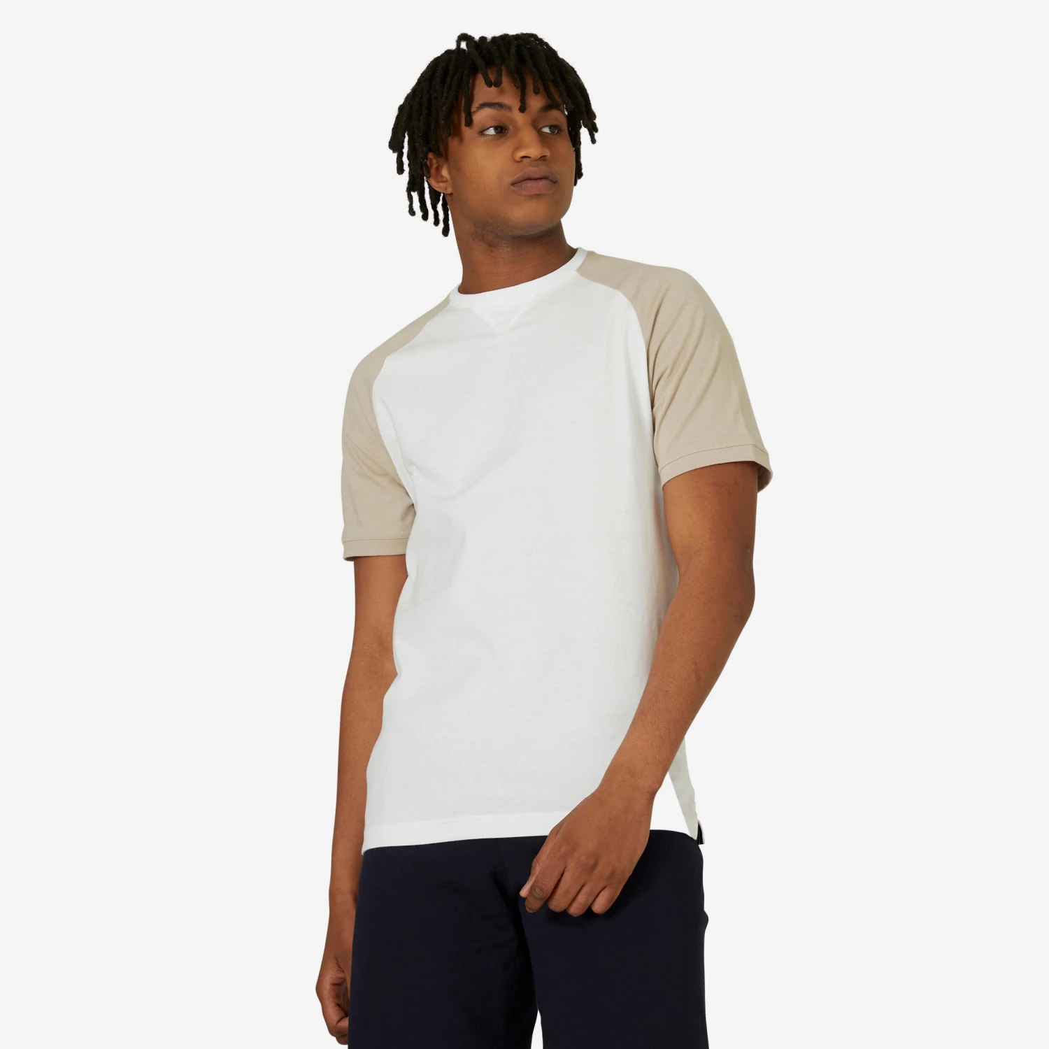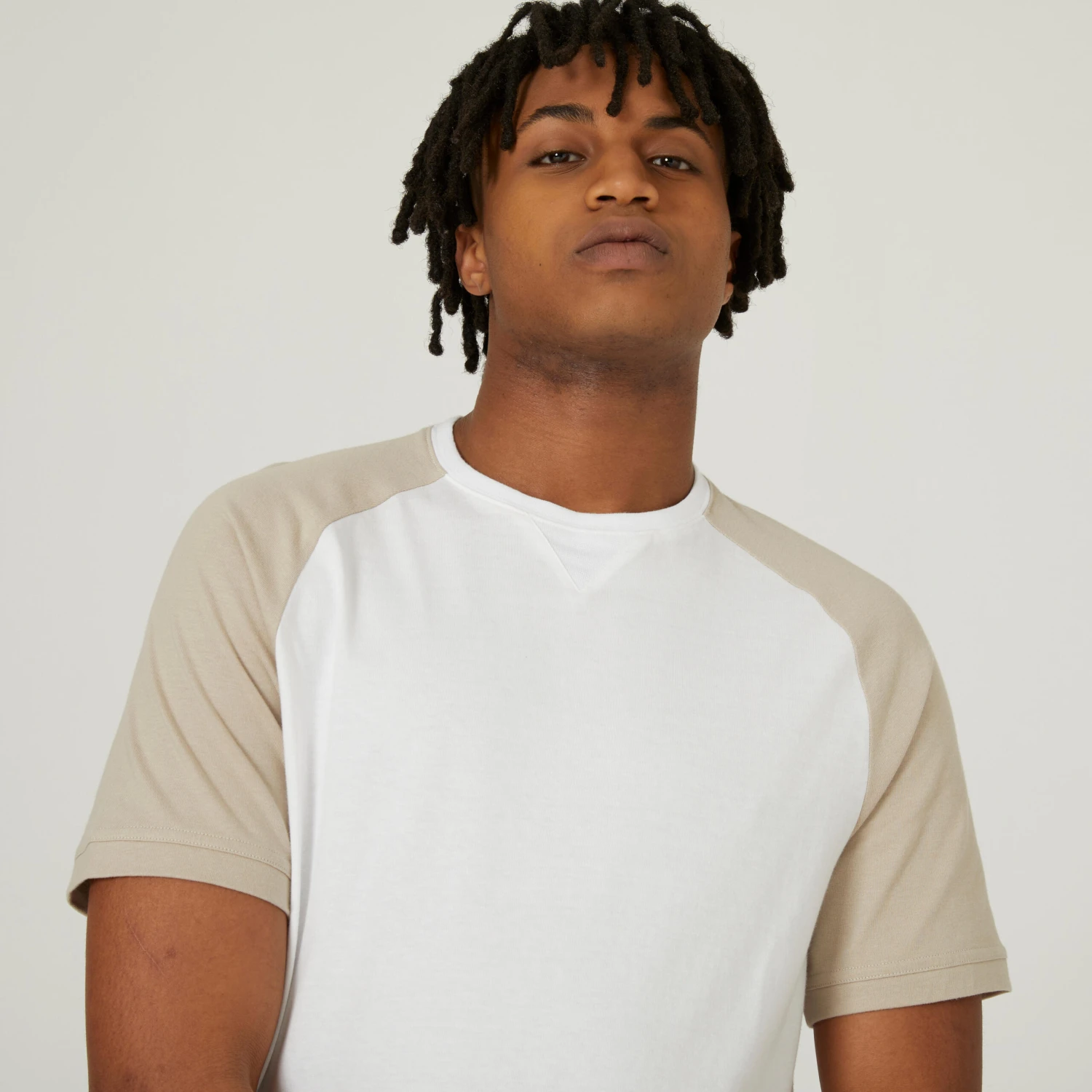 Level up your style with this two-toned T-shirt, eco-designed in fabric made with 30% recycled cotton (fabric weight: 190 gsm).This T-shirt has a sporty, athletic vibe. This T-shirt is longer than the other tees in the range and has a flattering regular fit and stylish sleeves in a different colour.