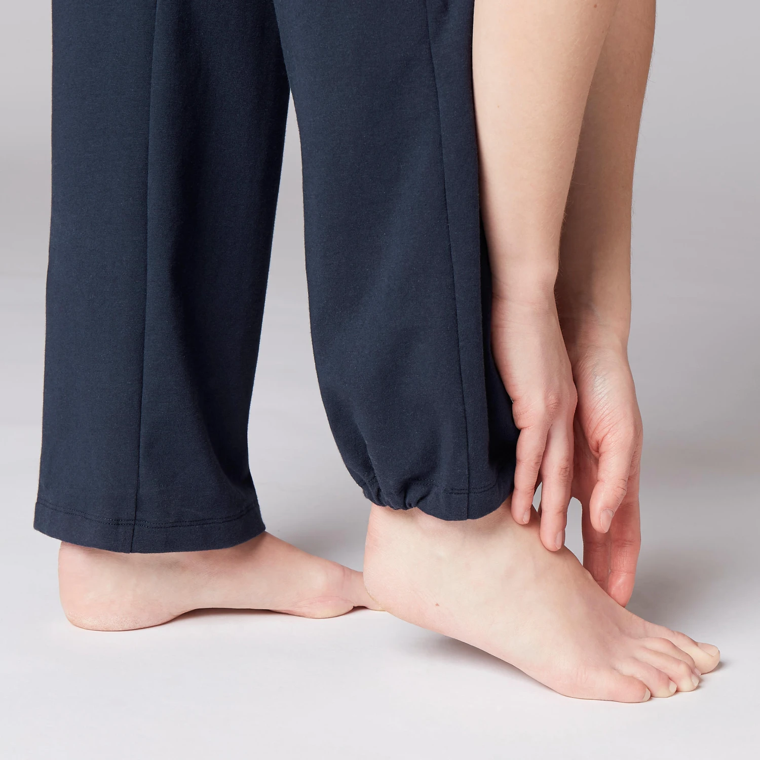 Looking for ultra-comfy bottoms for gentle yoga? Our team chose soft cotton and a loose fit for your practice.Soft, supple, eco-designed cotton jersey bottoms. The high-rise turn-down waistband supports the abs and fits any figure, even pregnant women.