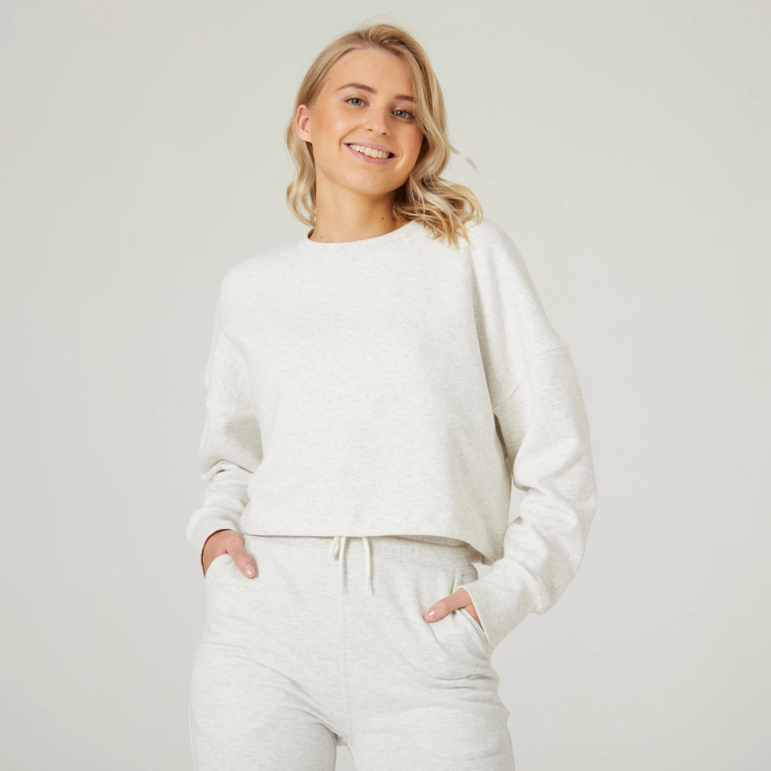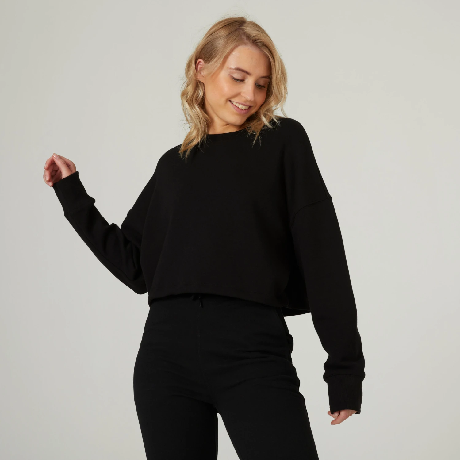 With its sleek style, its 220 g/m² fabric and its discreet drawstring, this cropped sweatshirt will go with whatever you’re wearing today.Looking for a super-stylish cropped sweatshirt? With its round neck, French terry fabric, wide range of colours and drawstring waist, this sweatshirt is flattering whether you’re working out or just going about your daily life.