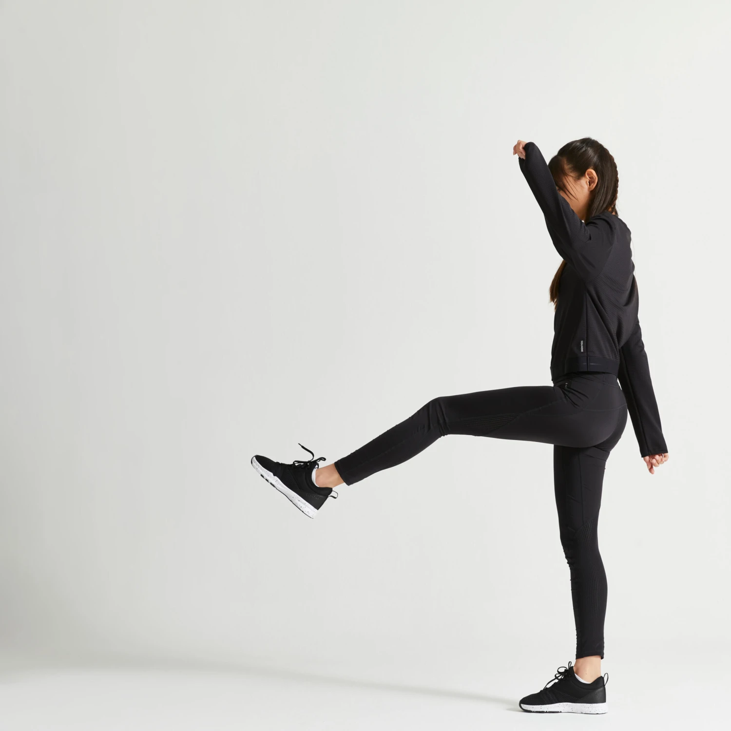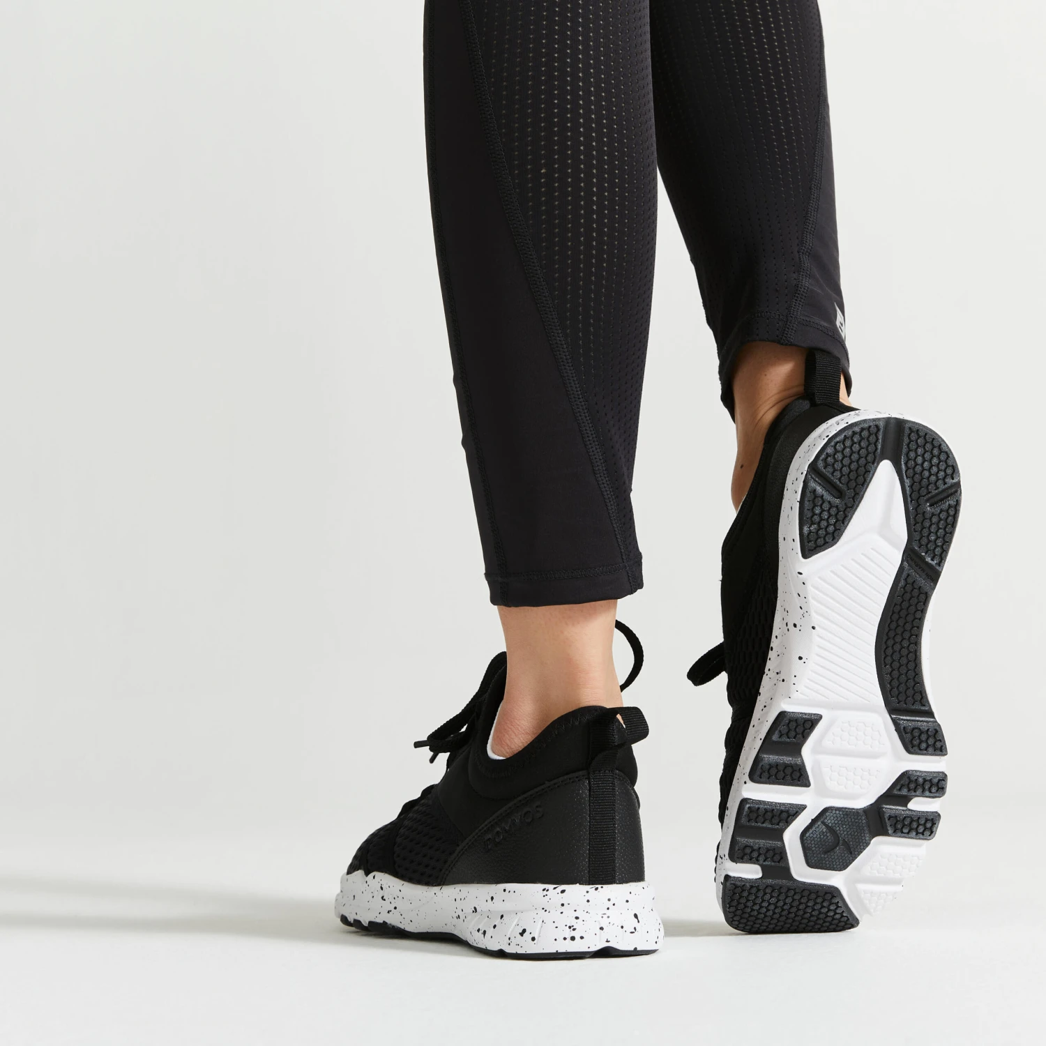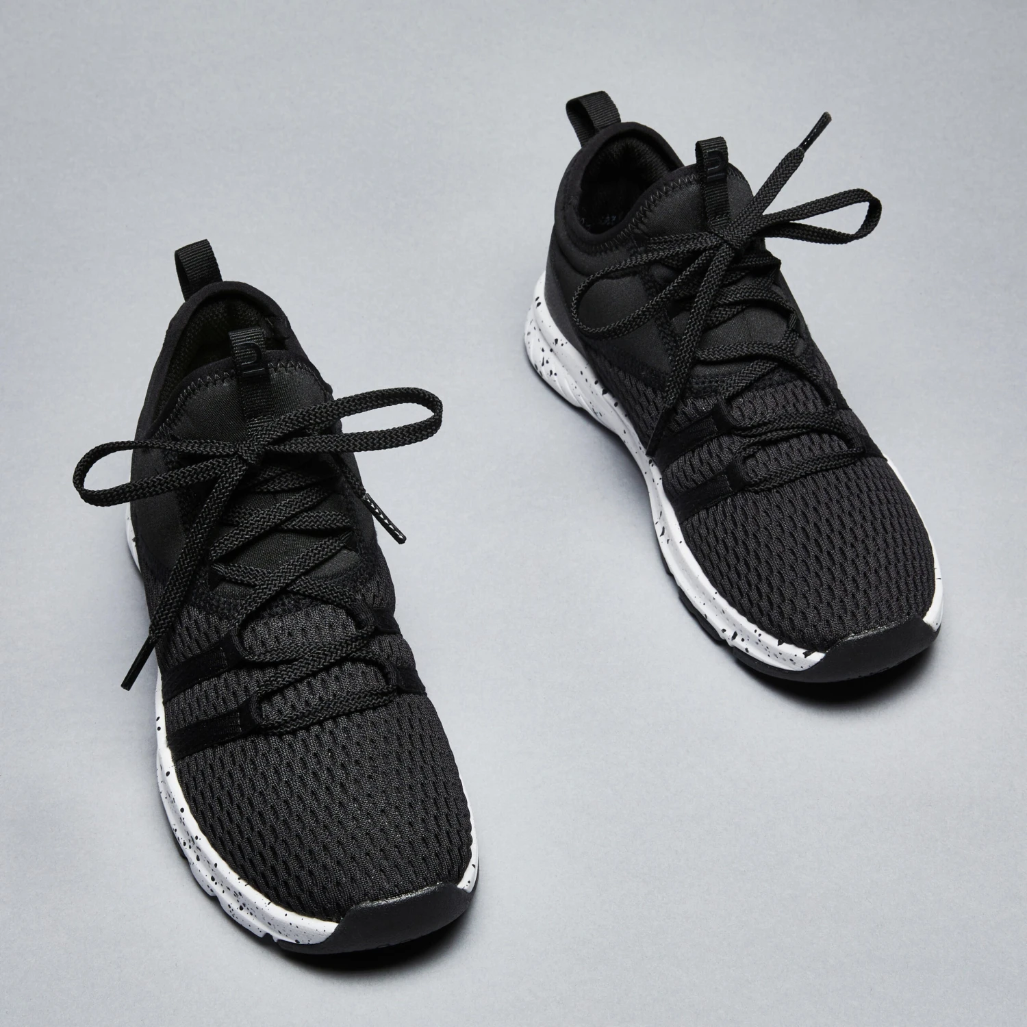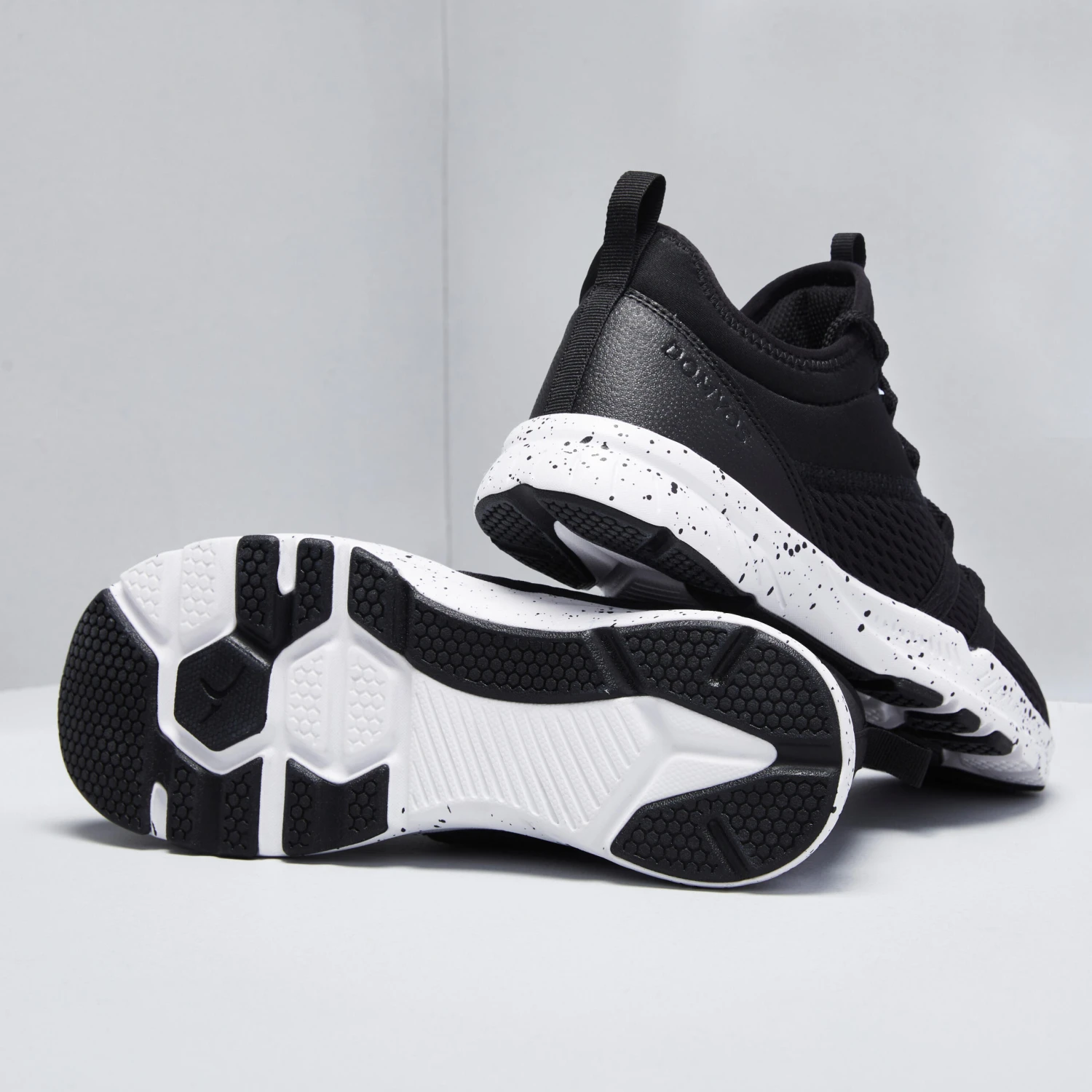 The main point of impact between the foot and the floor during fitness activities is at the forefoot, whereas for running the impact is at the heel. We design our shoes with excellent cushioning at the forefoot to protect your body from repeated impacts while also stabilising your supporting leg to help you string movements together more smoothly.