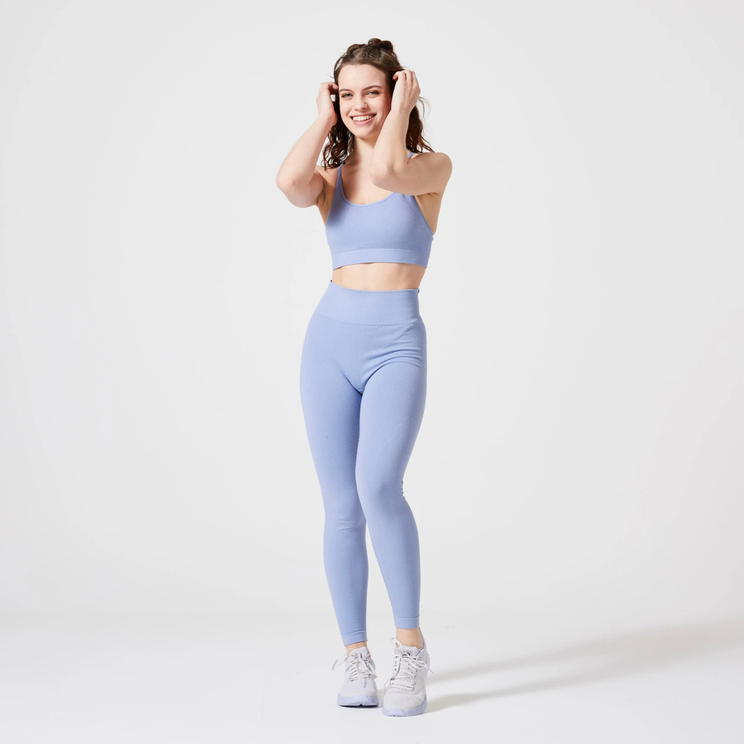 These super comfortable, seamless leggings, eco-designed with 37% organic cotton, are perfect for workouts and everything in between.With their ribbed fabric, bright colours and high waist, these ultra-trendy leggings are perfect for all your fitness workouts and everything in between. Team with the matching crop top for a complete outfit.