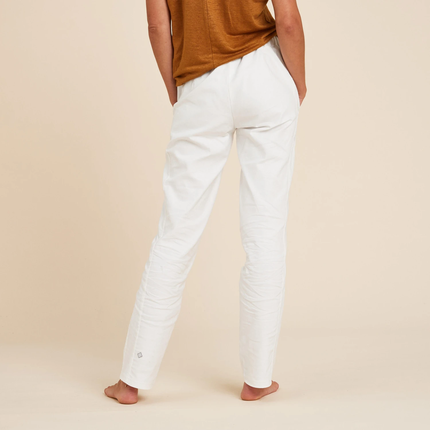Our yoga design team created these carrot bottoms in woven fabric to connect you to yoga’s Indian roots.Made from linen and cotton-rich fabric that is strong and stretchy: sleek and simple traditional bottoms for yogis.