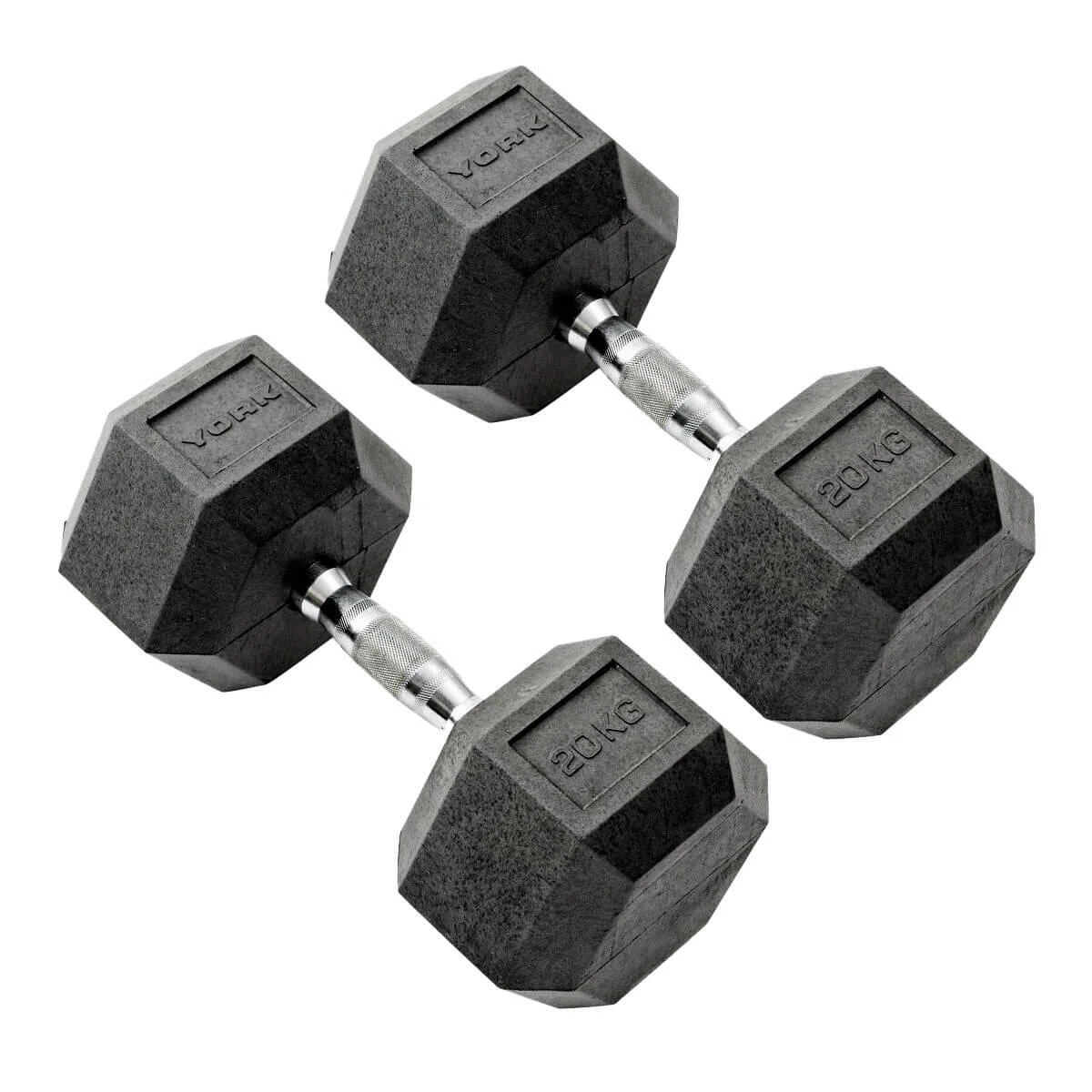 The York 20kg Rubber Hex Dumbbells are made for use in commercial environments including gyms and sports clubs. They are also great for those looking for a premium dumbbell selection for their home gym.