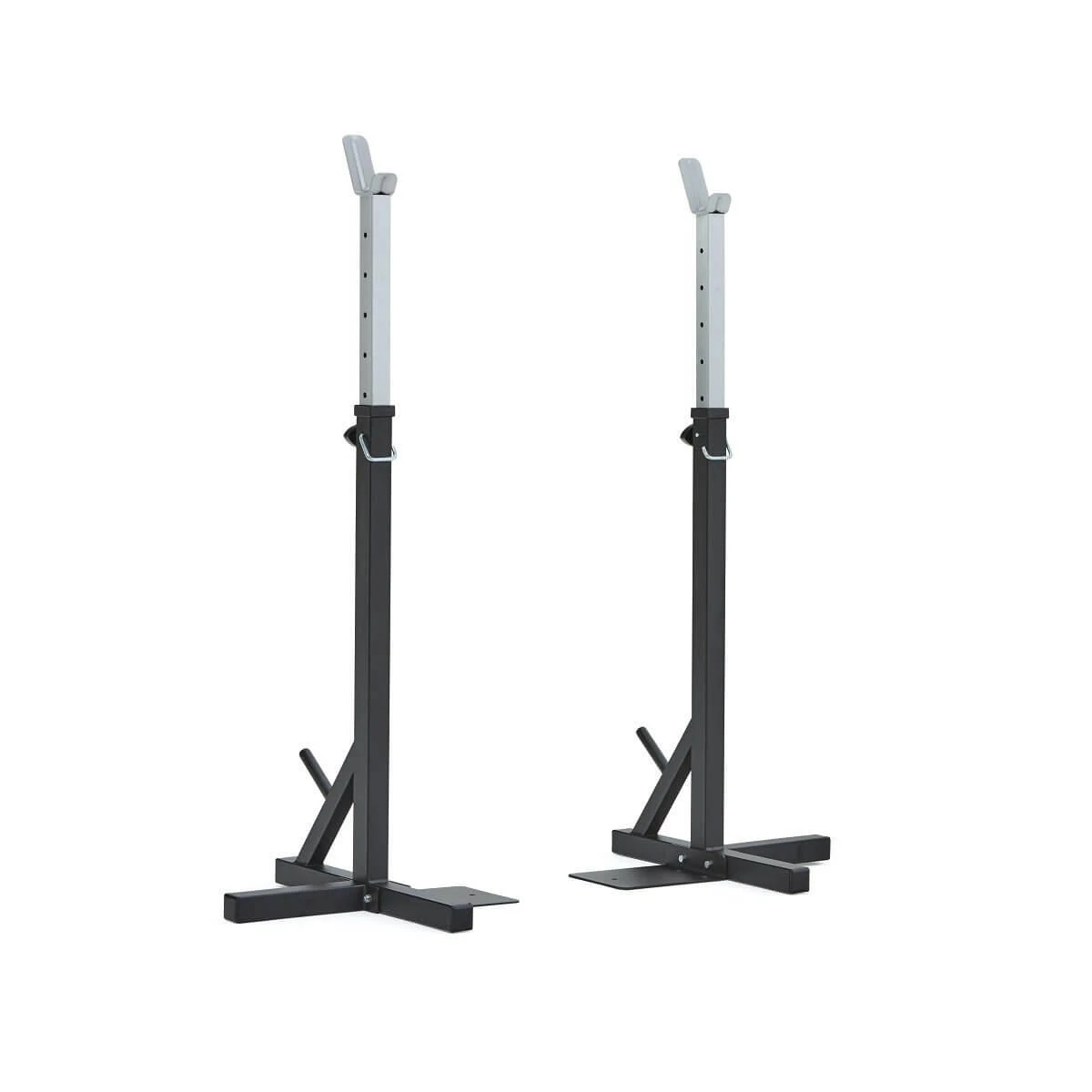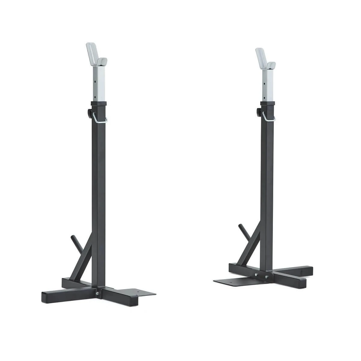 The heavy duty 2″ steel tubing stands are height adjustable from 100cm to 171cm. They also feature storage pegs for 1″ standard weight plates.